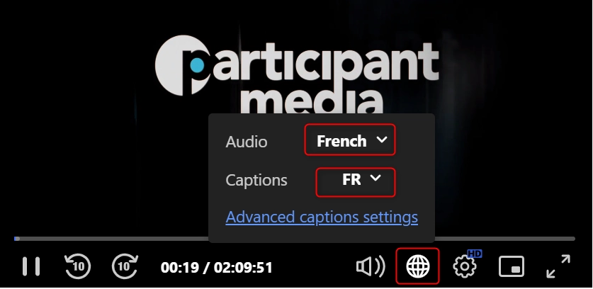 Cliquez sur l’option « Audio et sous-titres » en bas à droite de l’écran.